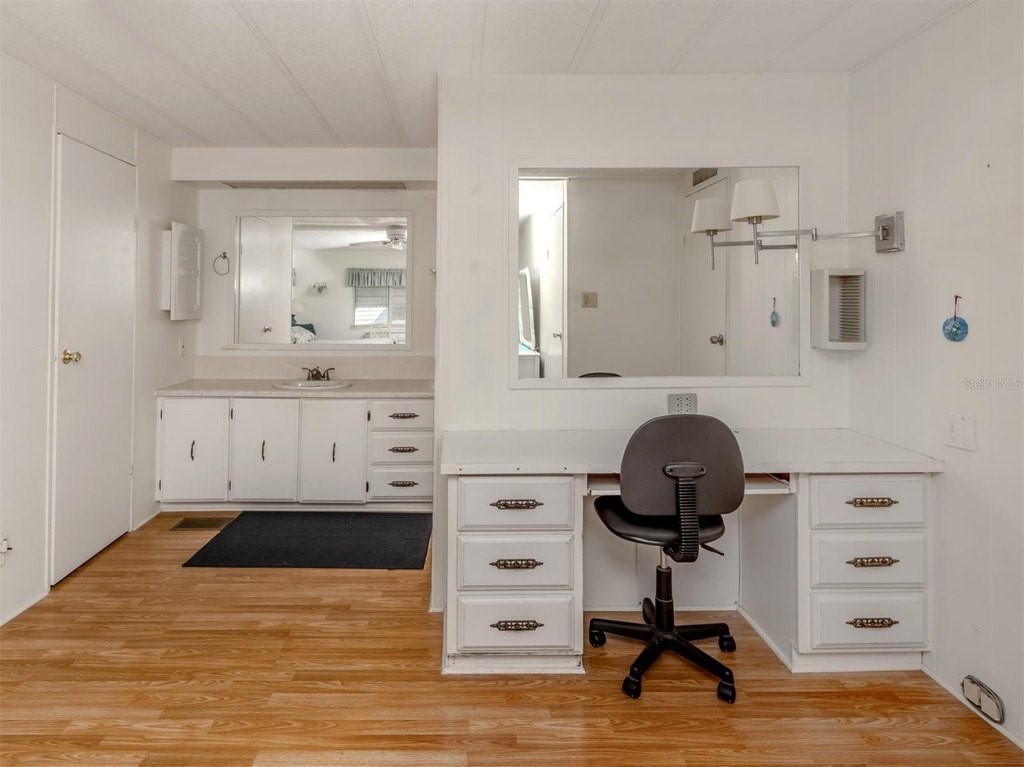 Beautifully maintained 2BR/2BA turn-key furnished home in the desirable 55+ community of Harbor Cove. This property offers numerous updates and a spacious, functional layout. The remodeled Florida room (2021) spans the front of the home and features luxury vinyl flooring, acrylic windows, and roller blinds. A screened lanai with vinyl windows and double doors provides additional living space and can accommodate car or golf cart parking. The large primary ensuite includes a built-in desk, and both bedrooms offer walk-in closets. Home features updated windows and sliding door, and the exterior has been resided. Major improvements include: tie-downs (2025), A/C & duct work (2024), replumbed (2024), roof membrane (2022), electric panel & surge protector (2019), and hot water heater (2017). Move-in ready with exceptional updates and pride of ownership throughout. Located in a vibrant waterfront community close to amenities, activities, and Gulf Coast attractions.